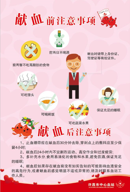2、献血前保证充足睡眠,二日内不饮酒,献血前两餐清淡饮食,不能空腹献血。
