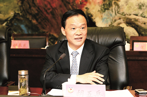 5月25日下午,胡五岳参加政协许昌市七届一次会议分组讨论。