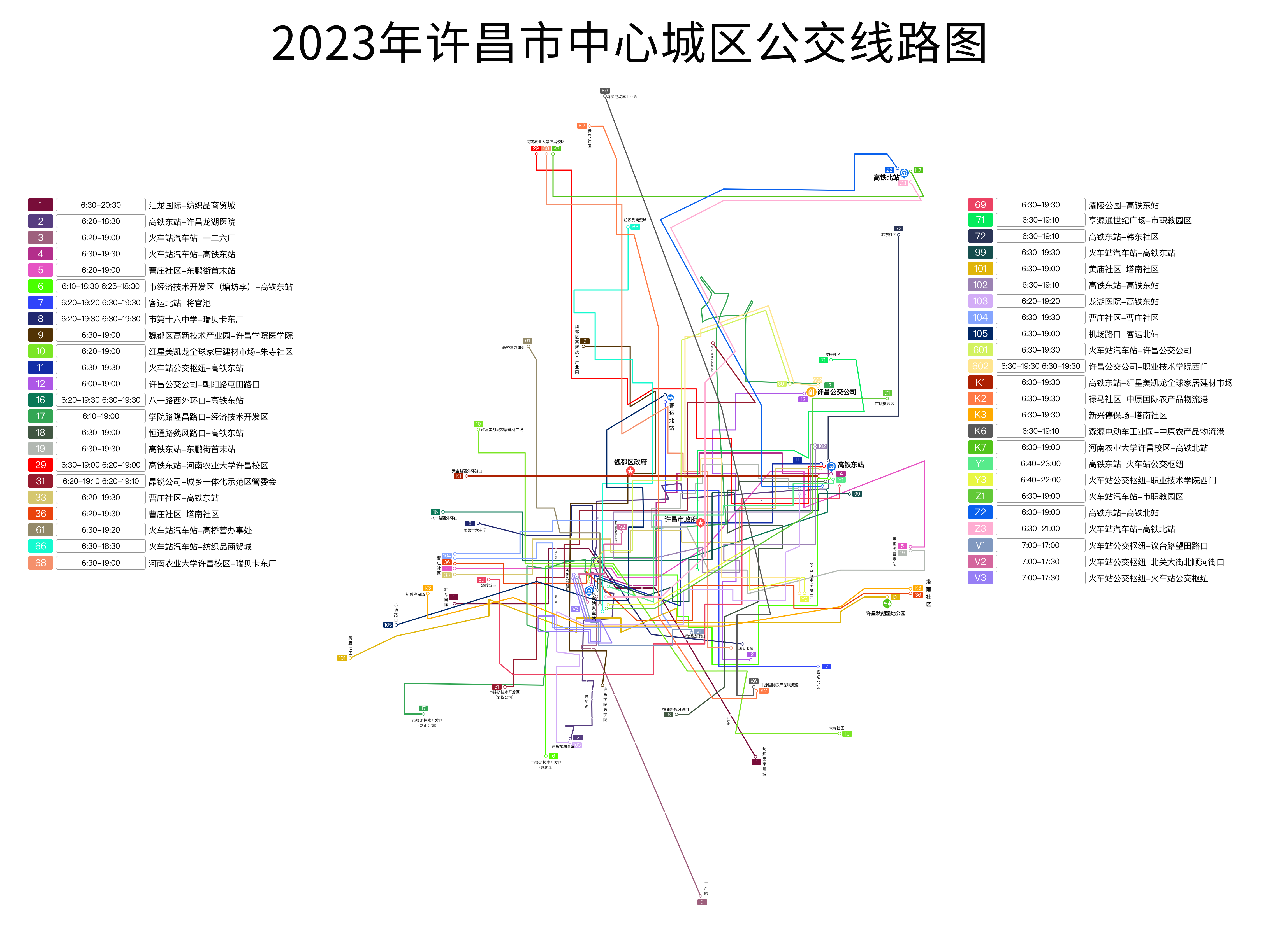2023年许昌市中心城区公交线路图