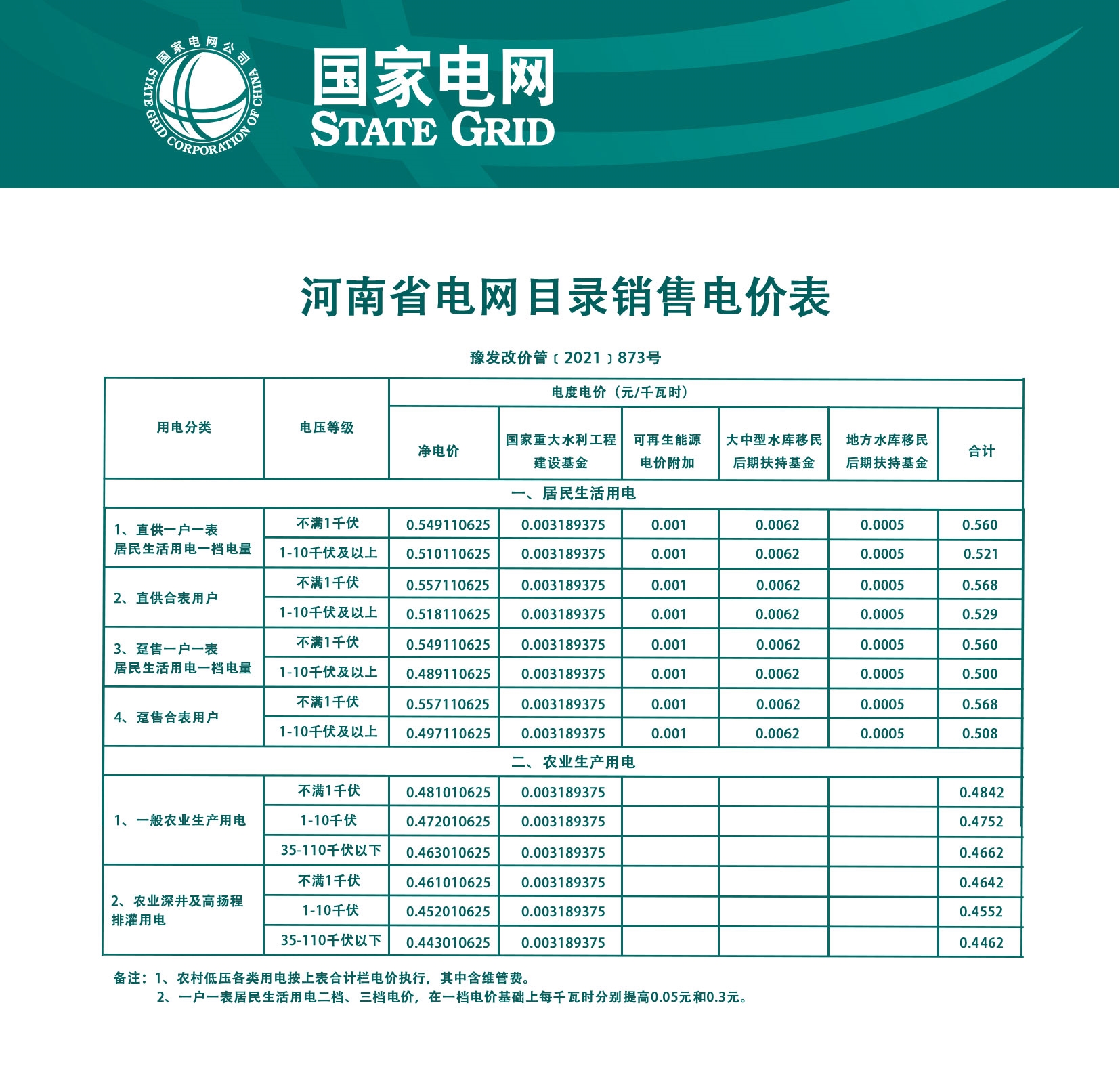 河南省电网目录销售电价表