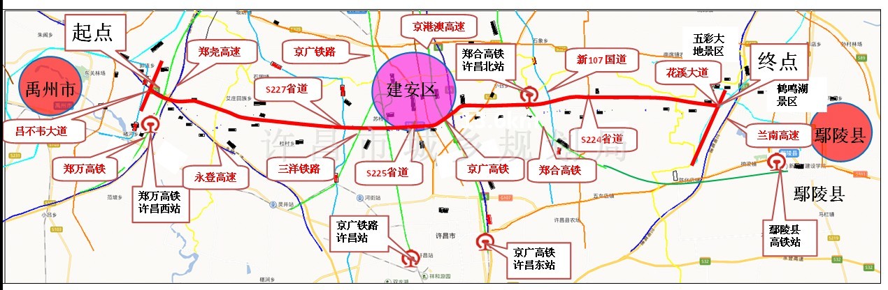 该项目规划拟建范围为禹州市吕不韦大道至鄢陵县花溪大道,全长约48.8公里。