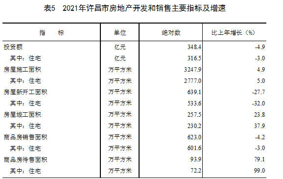 全年房地产开发投资348.4亿元,比上年下降4.9%。其中,住宅投资316.5亿元,下降3.0%;办公楼投资0.4亿元,下降88.4%;商业营业用房投资15.0亿元,下降27.4%。房屋施工面积3247.9万平方米,增长4.9%。房屋新开工面积639.1万平方米,下降27.7%。房屋竣工面积257.5万平方米,增长23.8%。商品房销售面积623.0万平方米,下降4.2%。