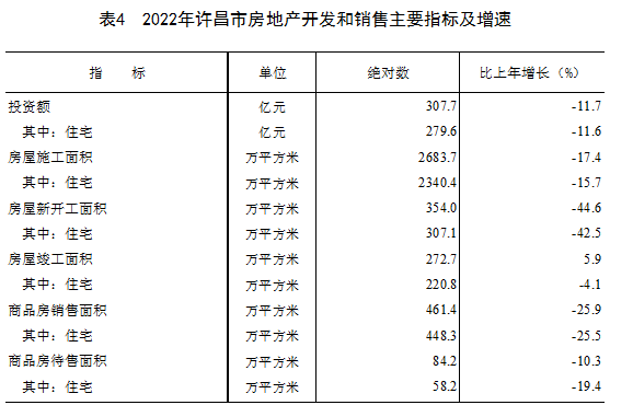 全年全市房地产开发投资307.7亿元,比上年下降11.7%。其中,住宅投资279.6亿元,下降11.6%。房屋施工面积2683.7万平方米,下降17.4%。房屋新开工面积354.0万平方米,下降44.6%。房屋竣工面积272.7万平方米,增长5.9%。商品房销售面积461.4万平方米,下降25.9%。