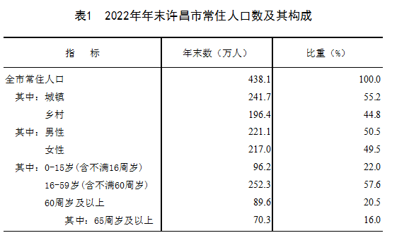 年末全市常住人口438.1万人,其中城镇常住人口241.7万人,常住人口城镇化率55.18%,比上年末提高0.6个百分点。全年出生人口2.9万人,出生率为6.62‰;死亡人口3.5万人,死亡率为8.07‰;自然增长率为-1.45‰。