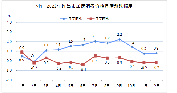 全年全市居民消费价格比上年上涨1.2%。其中,城市上涨1.0%,农村上涨1.5%。食品烟酒价格上涨0.8%。非食品烟酒价格上涨1.5%。服务价格上涨0.5%。工业品价格上涨2.1%。消费品价格上涨1.5%。