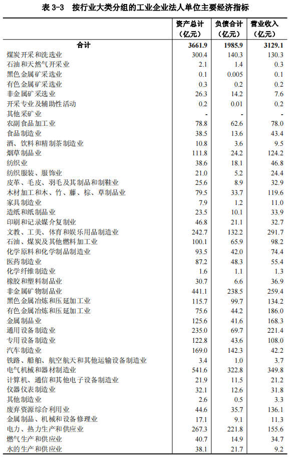 2023年,全市工业企业法人单位全年实现营业收入3129.1亿元(详见表3-3)。