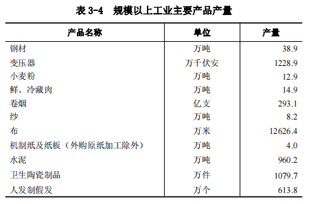 2023年,全市规模以上工业主要产品产量(详见表3-4)。
