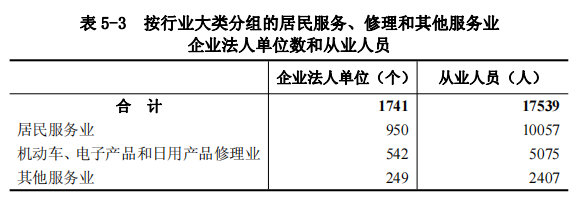 2023年末,全市共有居民服务、修理和其他服务业企业法人单位1741个,从业人员1.8万人(详见表5-3)。