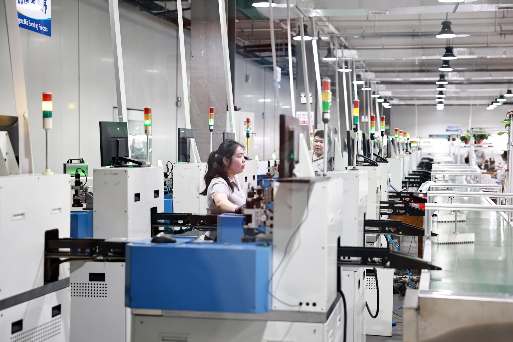 6月10日,位于长葛市的河南鸿昌电子有限公司,员工正在生产线上忙碌。该公司紧紧围绕市场需求,加大科技研发力度,成功利用多线切割技术,使微型芯片用半导体晶粒切割尺寸实现从厘米级到微米级的转型,可为5G通信、6G通信、智能汽车、人工智能、航空航天等领域提供精准控温的热电微电子芯片。