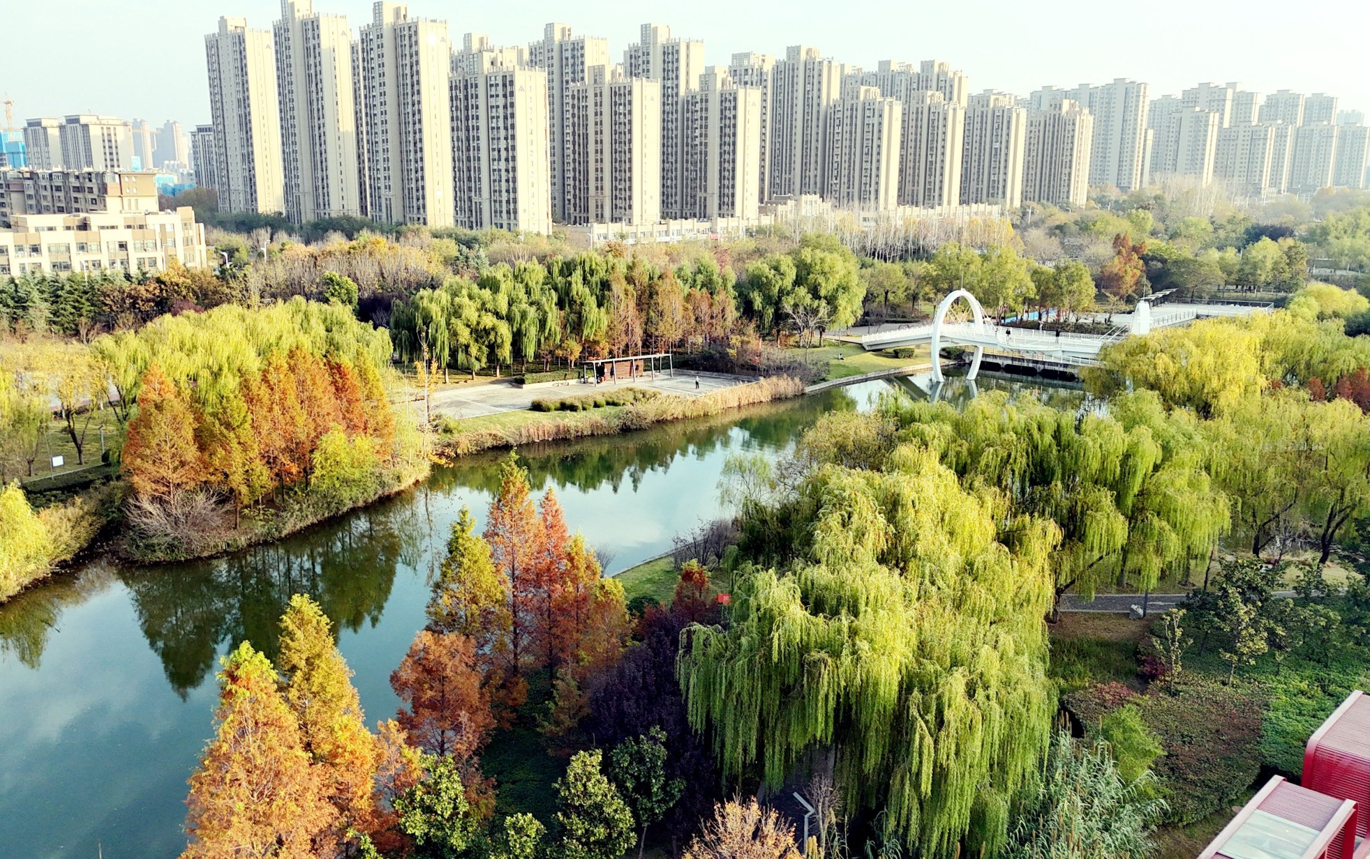 林水凝苍翠,清冬和暖天。11月24日,市区中央公园冬日景色宜人,清澈的水面倒映着岸边斑斓的林木,远处高楼与园内景色相映成趣。冬日暖阳下,这里成为市民休闲赏景的好去处。(乔利峰 摄)