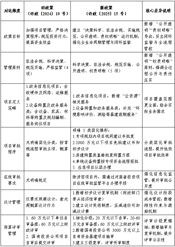 《许昌市财政性资金投资项目管理办法》新旧政策对比表