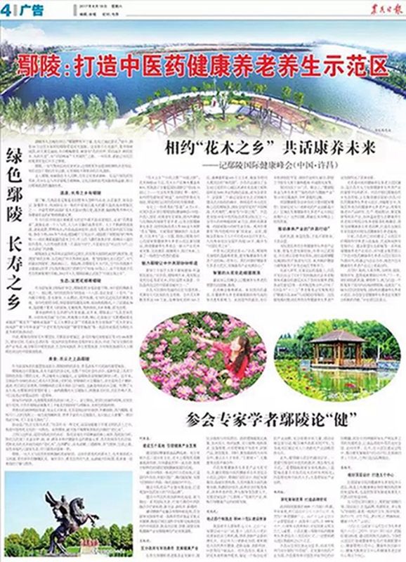 《农民日报》8月19日整版报道《鄢陵: 打造中医药健康养老养生示范区》,文章从《绿色鄢陵长寿之乡》、《相约“花木之乡”共话康养未来》、《参会专家学者鄢陵论“健”》三个方面诠释了鄢陵独特的生态资源与历史底蕴以及健康养生养老这一新兴产业的未来发展。一起来看农民日报的精彩报道吧。
