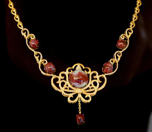 此外,坪山钧瓷首饰作品“天使的眼泪”在中国工艺美术学会、中国轻工联合会、中国轻工珠宝首饰中心联合举办的全国工艺美术大赛百花奖中,荣获金奖。该作品极其传神地兼具了钧瓷釉色纹路特点和制作首饰必需的天然形状,整件作品镶嵌雕饰得完善无瑕,浑然天成,钧瓷天珠上呈现出宝石红、紫红斑等典型钧瓷釉色特点,颜色融合自然,似琥珀天然融动,又似宝石流光溢彩,表层似蒙有一层薄纱,显得高贵含蓄。钧瓷天珠与黄金、钻石光芒交相辉映,散发出独特的工艺美感和艺术魅力。