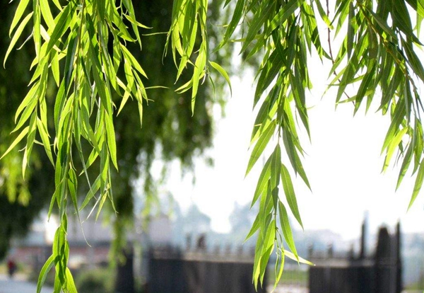 一场春雨刚过,柳树那细细长长的枝条上又泛出一层新绿。那些冒出来的毛茸茸的小芽,打了一个大大的呵欠,四处张望了一下,就舒展起身子来。它那婀娜多姿的树干映衬那柔软的枝条,还有那满树可爱的叶子,乍一看,就像一位楚楚动人的女子,亭亭玉立。
