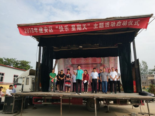 2018年9月2日,建安区“快乐星期天”启动仪式在新元办事处蒋马社区拉开帷幕。建安区十二个局委相关领导出席此次启动仪式,文广局李红秋局长致开幕词。