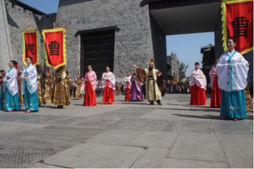 魏王曹操亮相曹魏古城,带领一众文武百官,士兵宫女,在南城门广场华丽迎宾,赐福于千万游客,气势恢宏、磅礴大气。