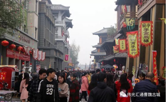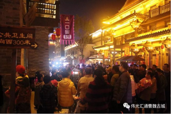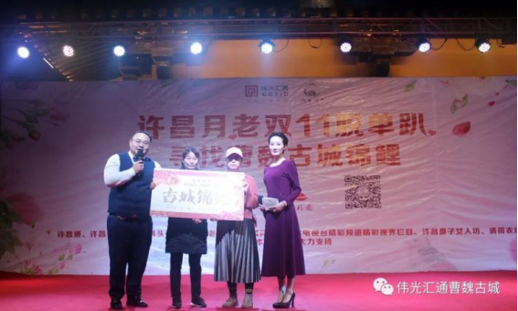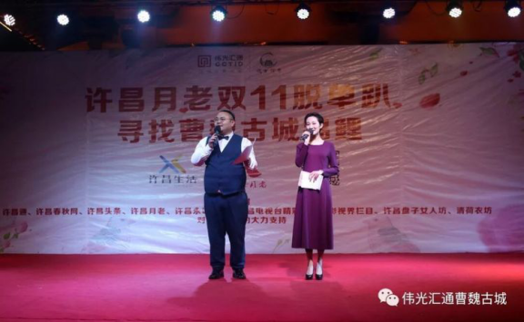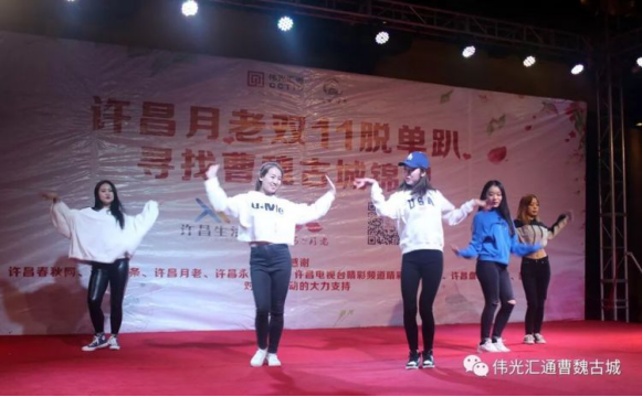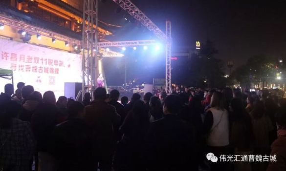 双11当天重头戏在晚间7点,由许昌伟光汇通曹魏古城运营管理有限公司与许昌月老联合举办的双11脱单趴&寻找曹魏古城锦鲤正式开始。