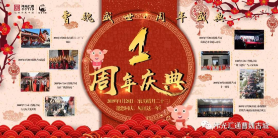 曹魏古城南大街自2018年2月8日(农历腊月廿三)开街以来,全年共计接待游客438万余人次;全年接待旅行社踩线83次;全年完成12个旅游线路串联;全年开展大型主题活动6次;引入社会资源共同举办6类品牌活动。聚人气,谋发展,新气象,创新章。2019年1月28日(农历腊月廿三)是南大街开街一周年,值此纪念日,特举办曹魏古城周年庆活动,回顾2018,展望2019!先跟着小编先去了解下周年庆都有什么好玩的吧~