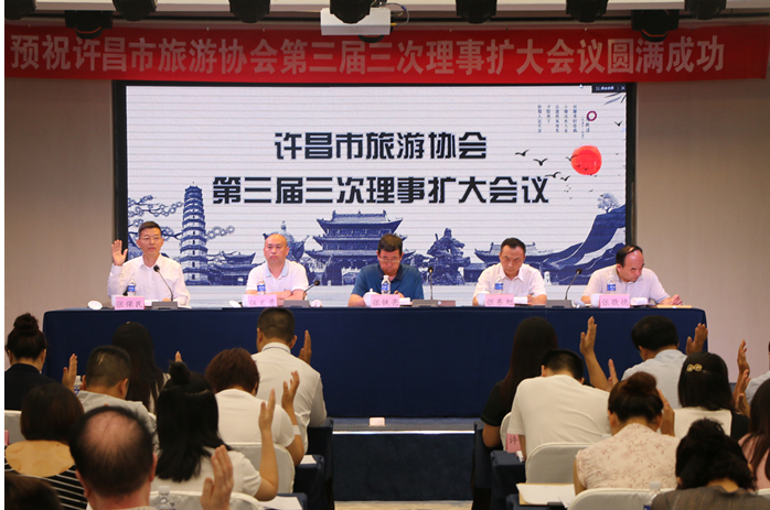 7月19日,许昌市旅游协会第三届第三次理事扩大会议暨旅游协会旅行社分会成立在许昌瑞贝卡大酒店举办。许昌市文广旅局调研员张铁亮、许昌市民政局社会组织管理和慈善事业促进科科长张东旭,许昌市民政局行政审批科科长伍文勇,许昌市文广旅局市场科科长张敬德,许昌市旅游协会会长张保民,许昌市旅游协会全体常务理事代表参加会议,市县区旅行社负责人及媒体记者参加了会议。