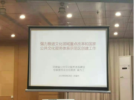 8月28日下午,鄢陵县文化广电和旅游局局长王春彪一行赴许昌参加全市国家公共文化服务体系创建工作培训班。会议由许昌市副市长赵淑红主持,河南省公共服务体系建设专家委员崔为工亲自授课。