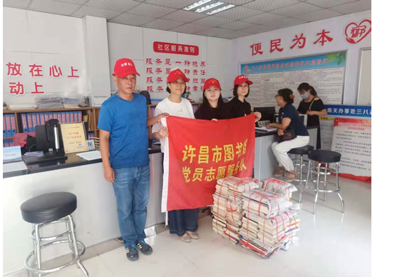 为进一步推进城市精神文明建设,推动全民阅读的深入开展,提高辖区居民文化程度和文化品位,积极营造社区人人爱学习、处处讲文明的氛围。近日,许昌市图书馆组织党员志愿者5名来到三八社区,开展送书进社区活动。