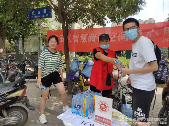 除了冰凉甘甜的纯净水,大家还准备了防暑提神的风油精,以平和烦躁的心情。许昌市建安区图书馆全体工作人员预祝广大考生考试顺利!心想事成!金榜题名!