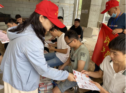 (许昌市图书馆工作人员为外来务工人员发放普法宣传手册)