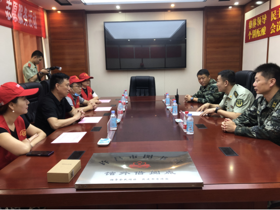 (安馆长与支队领导交谈进一步了解部队官兵需求)