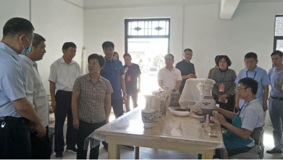 9月18日上午,许昌市政协副主席刘瑞红带领部分许昌市政协委员, 对我市非遗保护工作进行调研,许昌市文化广电和旅游局局长孟照阳、副局长段建伟、禹州市政协主席赵书欣、政协副主席邢书志、禹州市文化广电和旅游局局长白剑华等陪同调研。调研组听取了我市非遗保护工作的整体情况汇报,并实地调研非遗项目扒村瓷烧制技艺、扒村古村落、古民居及神垕镇槐树湾国际陶艺村创客基地。