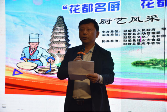 11月2日下午,鄢陵县“花都名厨、花都名菜”评比大赛在醉春园饭店举行。本次大赛由鄢陵县人民政府、许昌餐饮与饭店行业协会主办,县总工会、县文化广电和旅游局、县市场监督管理局及县商务局承办,鄢陵县建业大食堂、鄢陵县醉春园酒店、鄢陵县重庆牛香坊及鄢陵县姚家庄园饮食有限公司协办。出席本次大赛的领导有:鄢陵县人大常委会副主任丁昌明、鄢陵县人民政府副县长靳喜民、鄢陵县政协副主席段书安、鄢陵县总工会副主席李刚、鄢陵县文化广电和旅游局局长王春彪、鄢陵县市场监督管理局局长赵红亮;参加本次大赛的评委有:许昌市餐饮与饭店行业协会会长及国家职业技能鉴定考评员李钢、中国烹饪大师及国家职业技能鉴定考评员卢连法、鄢陵县市场监督管理局副局长陈文凯、河南省烹饪大师王万顺、鄢陵县餐饮与饭店行业协会会长王志千、鄢陵县餐饮与饭店行业协会副会长梁大霞、鄢陵县餐饮与饭店行业协会副会长尹志杰。