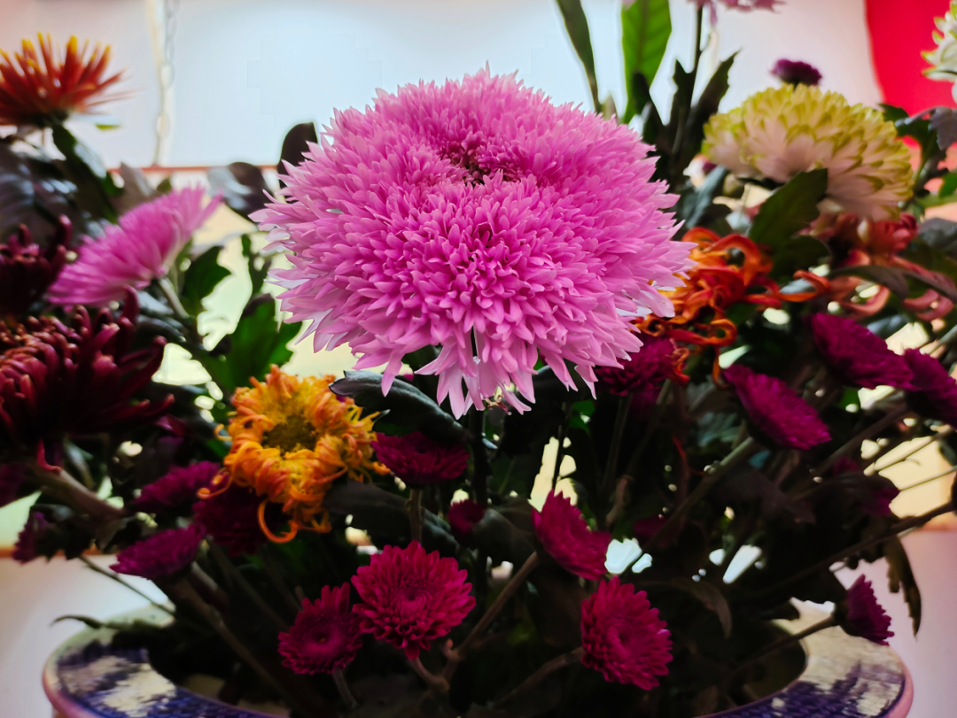 菊花千姿百态,红的如火,白的如云,粉的如霞,给人带来无比的视觉享受