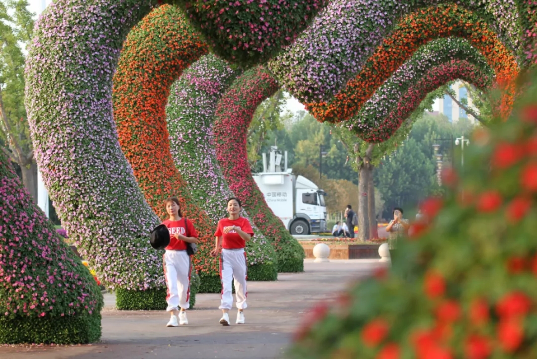 走进平原林海,就如扁舟驶入了万倾碧波,映入眼帘皆是绿,高高低低的绿,随着花木造型变化姿态万千的绿。绿的旋律起伏中,突然会有一大片绚烂色彩奏响强音。春日的碧桃、紫荆、海棠、樱花、玉兰,夏日的高杆月季,秋日的菊花,冬日的蜡梅,一种就几十上百亩,无遮无拦,尽情怒放,美得让人心疼。