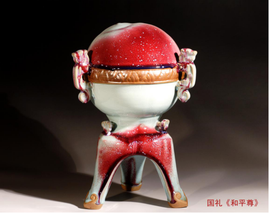 钧釉瓷常常带有高温红彩装饰,在天青色的釉中,有如流霞一般,十分美丽。有句话说“入窑一色,出窑万彩”,说的就是钧瓷了,充分表达出钧釉和彩在不同烧成环境下多变的特色,也就是所谓的窑变了