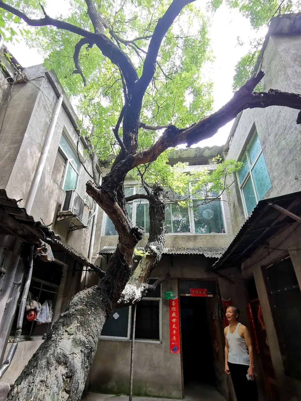 曹海民家的院子四面都盖有房子,组成了一个小小的四合院,大槐树的树干犹如苍龙一般蜿蜒而上,部分树枝贴着房屋向上生长,在房顶上“探”出头来。翠绿的树冠犹如一把伞,遮挡着阳光,把阴凉留给了这个小小的院落。