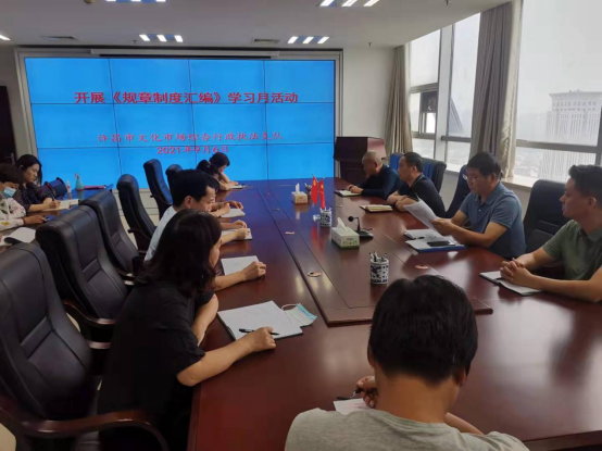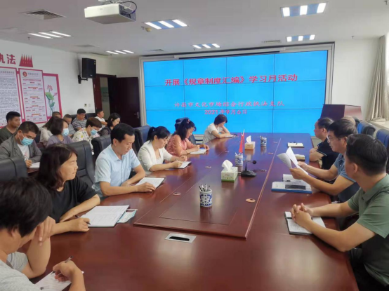 此次活动以近日新修订的《许昌市文化市场综合行政执法支队规章制度汇编》为主要内容,主要有以下五个亮点:一是组织领导过硬。成立了以主要领导任组长的领导小组,领导小组下设办公室,牵头组织活动的具体实施。健全工作机制,形成了主要领导亲自抓、分管领导具体抓、其他领导配合抓的工作格局。二是统筹结合到位。推动“规章制度学习月”活动与党史学习教育、文化市场综合行政执法工作有机结合,做到以学促干、执法为民,全面提升执法人员“为民办实事”的综合素养。三是贴合实际紧密。市执法支队以习近平新时代中国特色社会主义思想为指导,结合近年来文化市场出台、修订的法律法规、综合执法工作实际和执法改革要求等情况,修订、编制了这本最新版的内部管理工作遵循和执法人员行为指南,体现了与时俱进、求真务实的精神品质。四是学习形式多样。活动将采取班子成员领学、大队专题研学、干部职工交流互学、全员测试督学等多种方式,坚持集中学习与个人自学相结合,推动全体干部职工原原本本、深学悟透、在把握实质上下功夫。五是长效机制构建。大力引导全体人员将规章制度学习作为加强自身建设的一项基础性工作、长期性任务,持之以恒、常抓不懈,做到熟记于心、落实在行,探索建立长效机制,全力推进市执法支队标准化建设