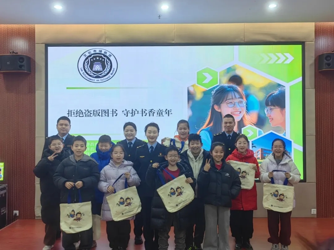 又是一年开学季,为进一步提升学生自觉抵制盗版图书、有害出版物的能力,为学生健康成长营造良好的社会文化氛围。2月11日,许昌市文化市场综合行政执法支队联合图书馆、许昌市毓秀路小学四(5)班部分学生,开展了以“拒绝盗版图书 守护书香童年”为主题的普法宣传活动,为孩子们的绿色阅读、健康成长保驾护航。