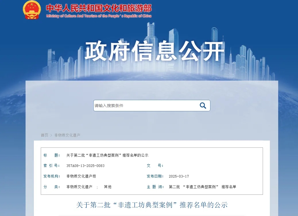 关于第二批“非遗工坊典型案例”推荐名单的公示