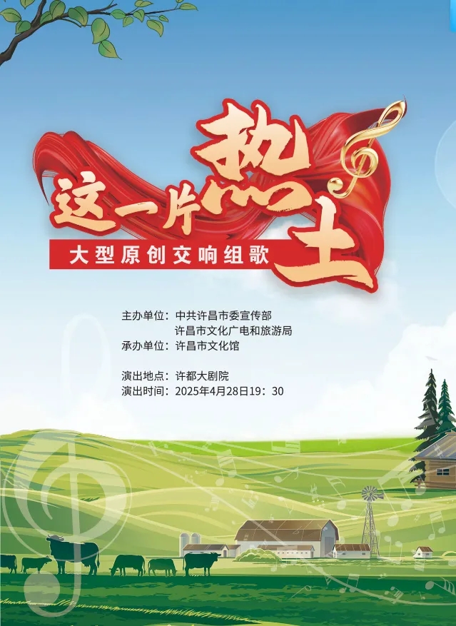 由中共许昌市委宣传部、许昌市文化广电和旅游局共同打造的大型原创交响组歌《这一片热土》,将于4月28日晚在许都大剧院进行公益演出。该节目作为2025许昌三国文化旅游节的重点演出活动之一,届时为全市人民献上一道丰盛的高雅音乐大餐。