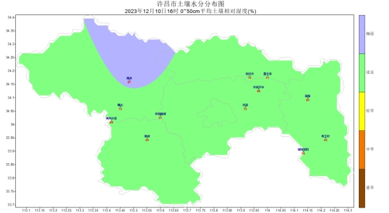 [气温]上周各地平均气温在7.6(陈化店)~13.3℃(神垕)之间,其中:陈化店、顺店、农场等地平均气温较低,在8℃以下,陈化店最低,为7.6℃;神垕、文殊、无梁等地平均气温较高,在12℃以上,神垕最高,为13.3℃;其他大部分地区平均气温在8~12℃之间。周内各地极端最低气温值在12月3日-7.6℃(龙源),最高气温值在12月8日26.1℃(大鸿寨)。各地气温距平值在5.2℃(许昌)~7.5℃(鄢陵)之间,较常年同期值相比许昌气温异常偏高,鄢陵气温异常偏高。