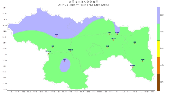 [气温]上周各地平均气温在7(古城)~10.6℃(文殊)之间,其中:古城、龙源、陈化店等地平均气温较低,在8℃以下,古城最低,为7℃;文殊、无梁、神垕等地平均气温较高,在10℃以上,文殊最高,为10.6℃;其他大部分地区平均气温在8~10℃之间。周内各地极端最低气温值在2月11日-4.8℃(龙源),最高气温值在2月14日21.8℃(只乐)。各地气温距平值在3.9℃(许昌)~5.8℃(鄢陵)之间,较常年同期值相比许昌气温异常偏高,鄢陵气温异常偏高。