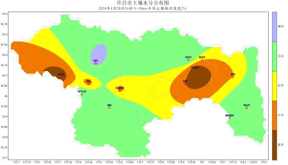 [气温]上周各地平均气温在18.5(大鸿寨)~22.2℃(金桥)之间,其中:大鸿寨、龙源、顺店等地平均气温较低,在20℃以下,大鸿寨最低,为18.5℃;佛耳湖、金桥、苏桥等地平均气温较高,在22℃以上,金桥最高,为22.2℃;其他大部分地区平均气温在20~22℃之间。与常年同期相比,各地平均气温较常年同期偏高2.5~22.2℃。周内各地最低气温值在4月24日 6℃(许昌),最高气温值在4月27日 31.1℃(襄城)。各地气温距平值在2.5℃(许昌)~4.6℃(鄢陵)之间,较常年同期值相比许昌气温异常偏高,鄢陵气温异常偏高。