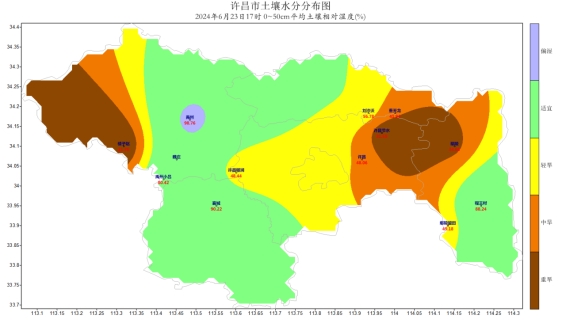 [降水]上周全市各地降水量在0.7~48.6mm之间,其中:大鸿寨、接官亭、文殊等地降水量在29.0mm以上,大鸿寨最多,为48.6mm;郑湾、屯沟、张潘等地降水量在2.0mm以下,其他地区降水量在2.0~29.0mm之间。各地降水距平百分率在-78.3%(许昌)~-15.7%(长葛)之间,较常年同期值相比许昌降水异常偏少,长葛降水偏少。