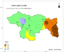 [土壤墒情]根据2024年10月20日17时0-20cm自动土壤水分监测资料显示,全市适宜测站比例为46%,偏湿测站比例为14%,干旱测站比例为40%,干旱测站较上周减少了20个百分点。
