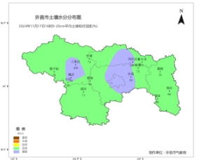 [土壤墒情]根据2024年11月17日16时0-20cm自动土壤水分监测资料显示,全市适宜测站比例为57%,偏湿测站比例为43%。