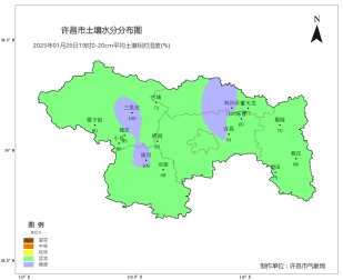 [土壤墒情]根据2025年1月26日19时0-20cm自动土壤水分监测资料显示,全市适宜测站比例为73%,偏湿测站比例为27%。