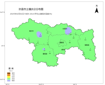 [土壤墒情]根据2025年2月2日15时0-20cm自动土壤水分监测资料显示,全市适宜测站比例为80%,偏湿测站比例为20%。