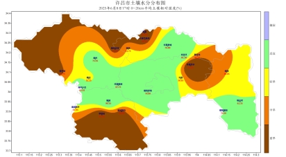 根据当前气象资料分析,预计下周后期我市有短时阵雨,周降水量较常年同期偏少,周平均气温较常年同期偏高。根据当前墒情和未来天气预报,预计至6月15日,我市部分地区土壤缺墒仍将持续发展。