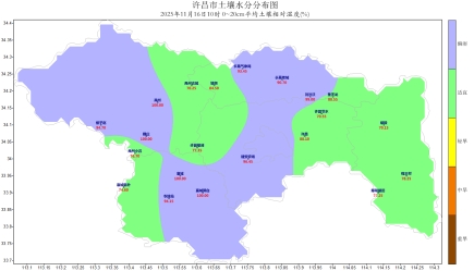 [土壤墒情]11月16日10时自动土壤水分监测资料显示:全市土壤表层(0-20 厘米)墒情适宜测站比例为52%;偏湿测站比例为48%,较上周减少了14个百分点。其中19%的测站土壤水分过饱和。