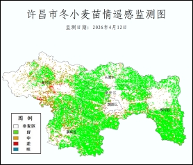 [小麦苗情]根据最新遥感苗情监测结果显示,目前全市长势好的面积比例为:79.2%,长势一般的面积比例为:20.0%,长势差的面积比例为:0.8%。(卫星遥感监测受云、雾、大气条件和反演方法等因素影响,与实测数据相比存在一定误差)