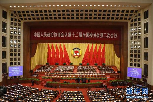 ,全国政协十二届二次会议在北京人民大会堂举行第四次全体会议。